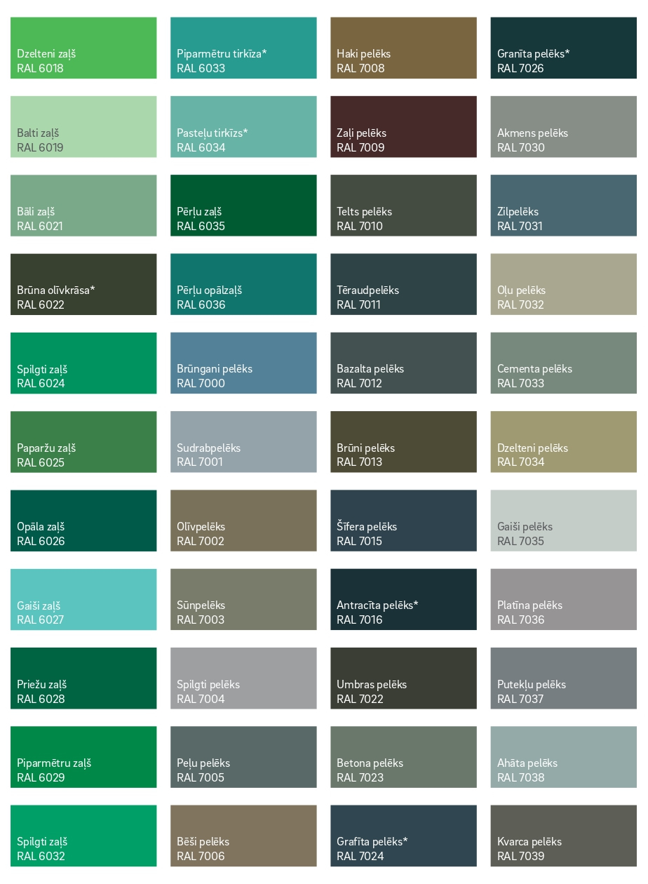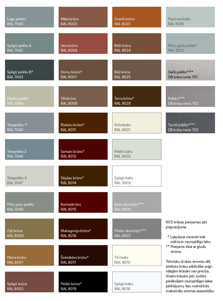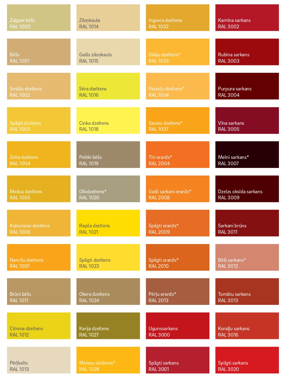 Plašāk par krāsām, vaicājiet pārdošanas speciālistiem vai skatiet zemāk esošos pdf failus.