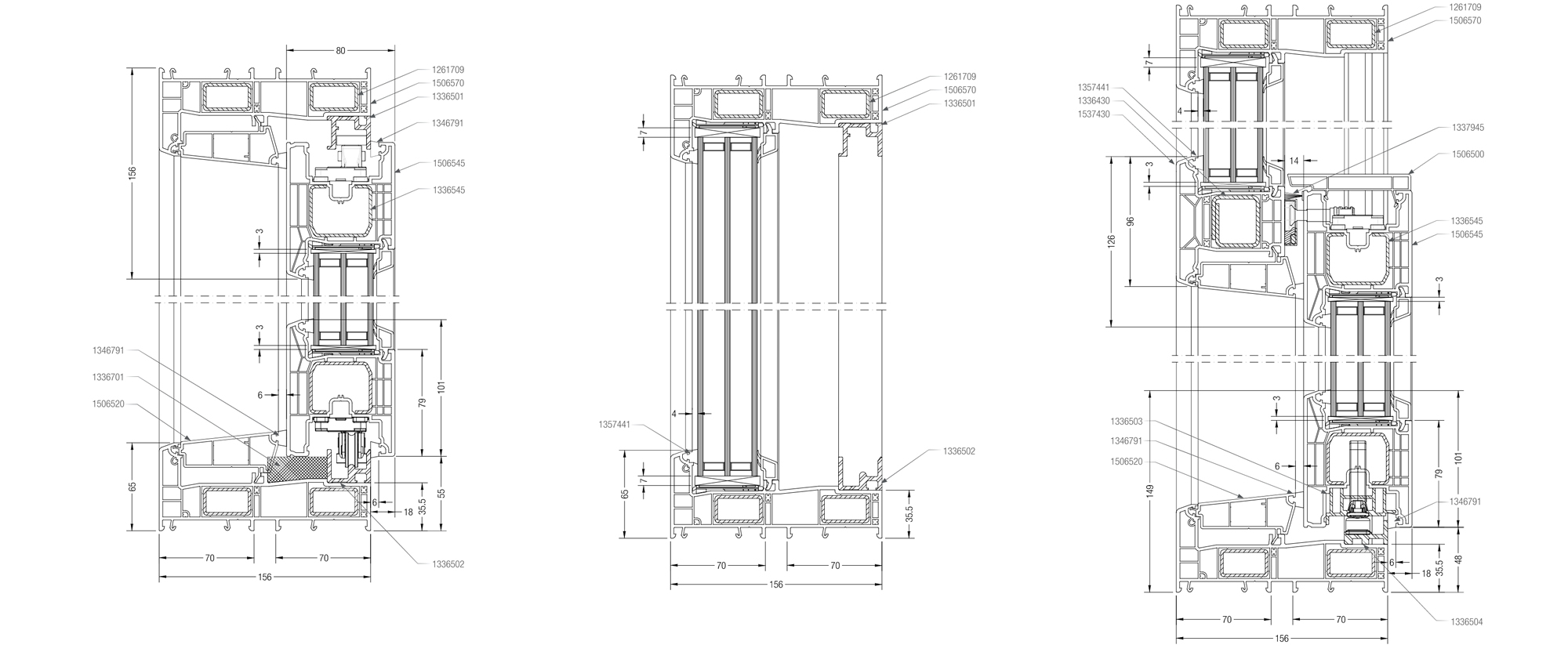 PVC-Sistēma ar 156 mm iebūves dziļumu un Uf-vērtību